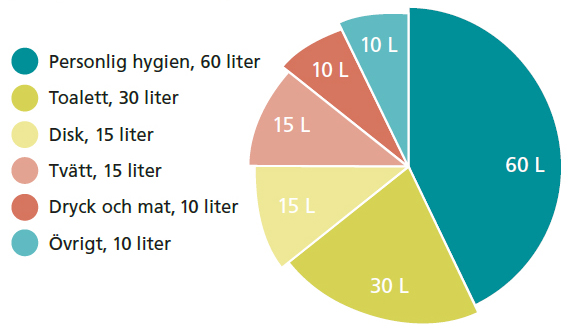 I genomsnitt använder varje person i Sverige 140 liter vatten per dygn.